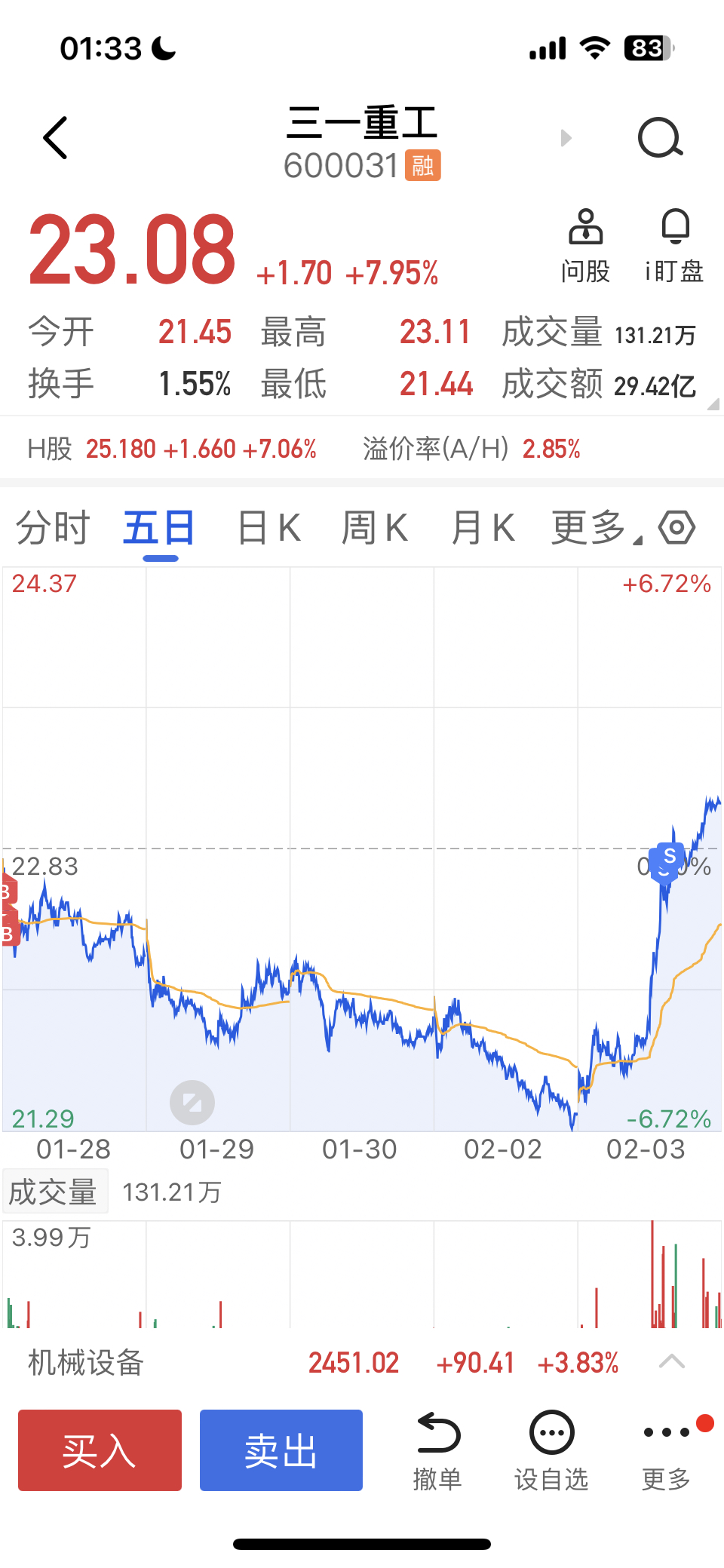 $三一重工(SH600031)$ 还好卖的是几天前想做的t