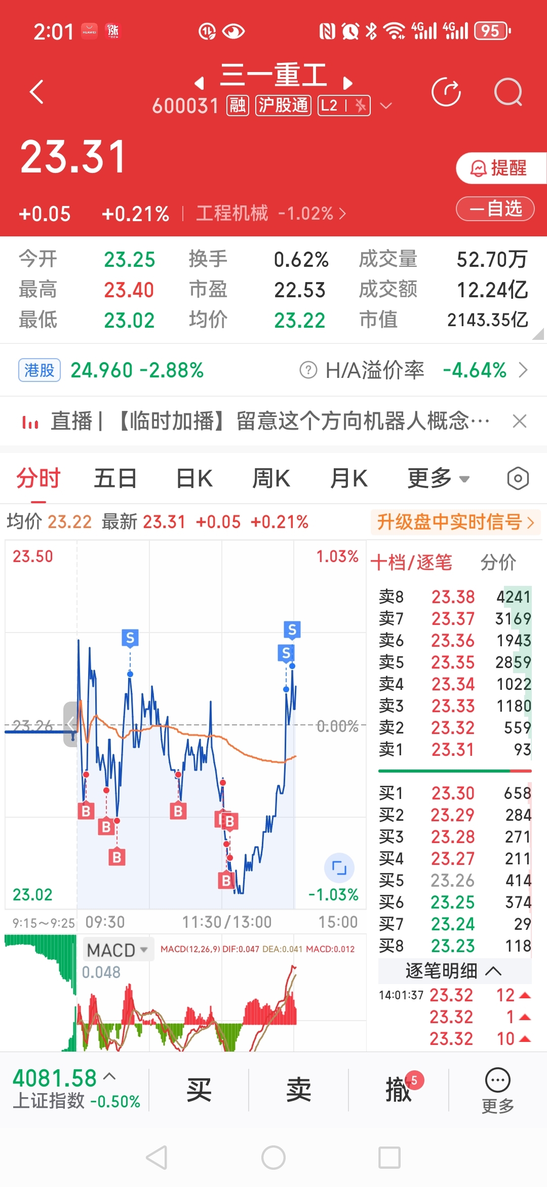 $三一重工(SH600031)$ 两毛多也不错了,一次30手,也有六百多。做个四五次也有三四千,可以了。下班了。