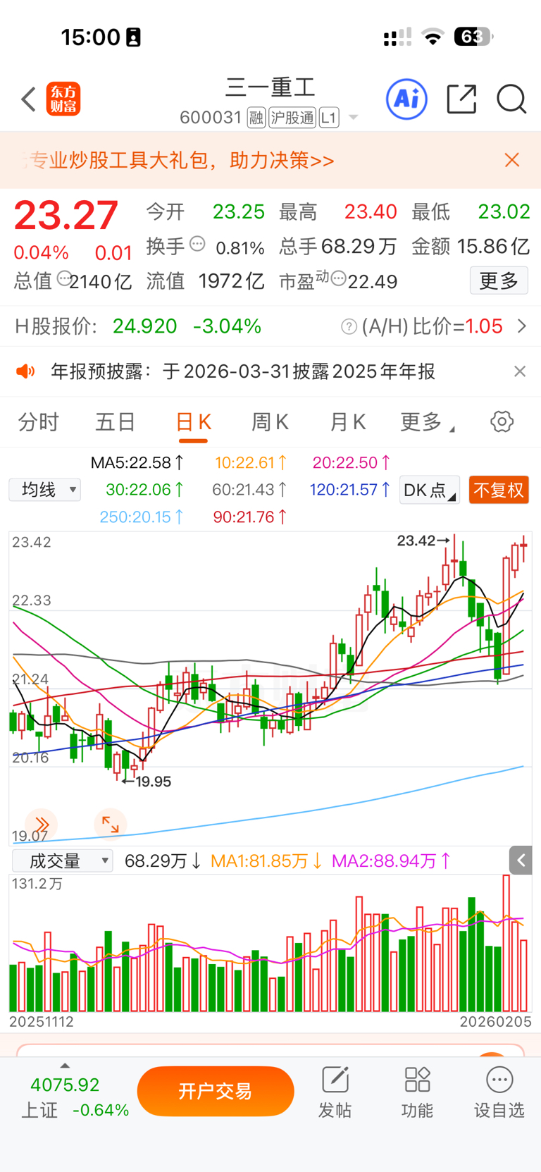 三大工程机械全部高位十字星,厉害