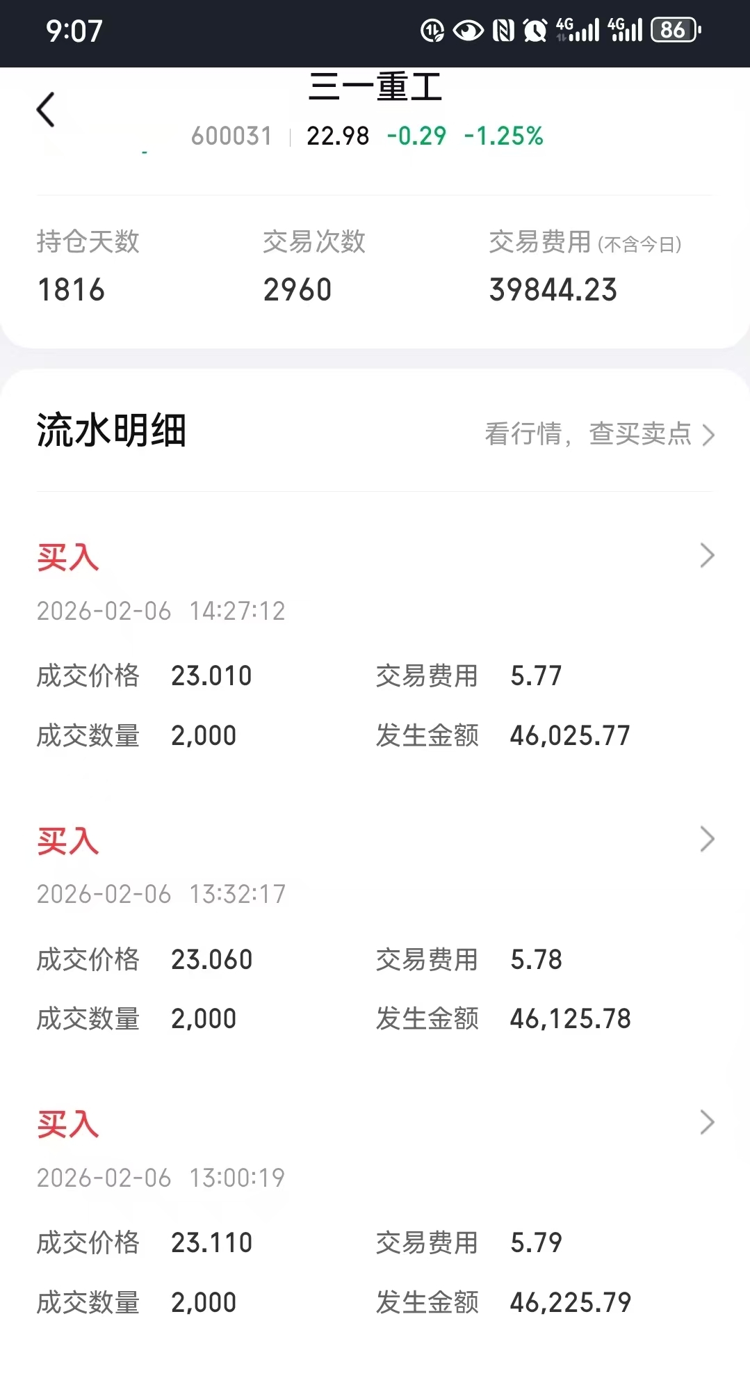 $三一重工(SH600031)$ 有的人亏几千块就天天哇哇叫,你看看这手续费和持股天数就会明白了。
