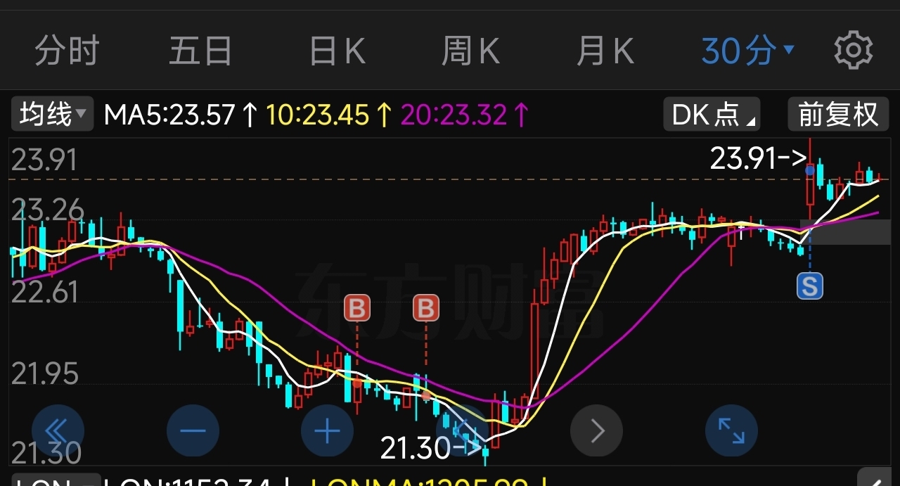昨天再次产生了30分钟结构的底分型,那么也就意味着它有可能出现30分钟结构的上涨,重点就要关注一下这一笔内部5分钟结构是否已经走完啊,今天看15.13是否有效支撑。成功了,那么就大概率开启日线级别的一笔上涨咯