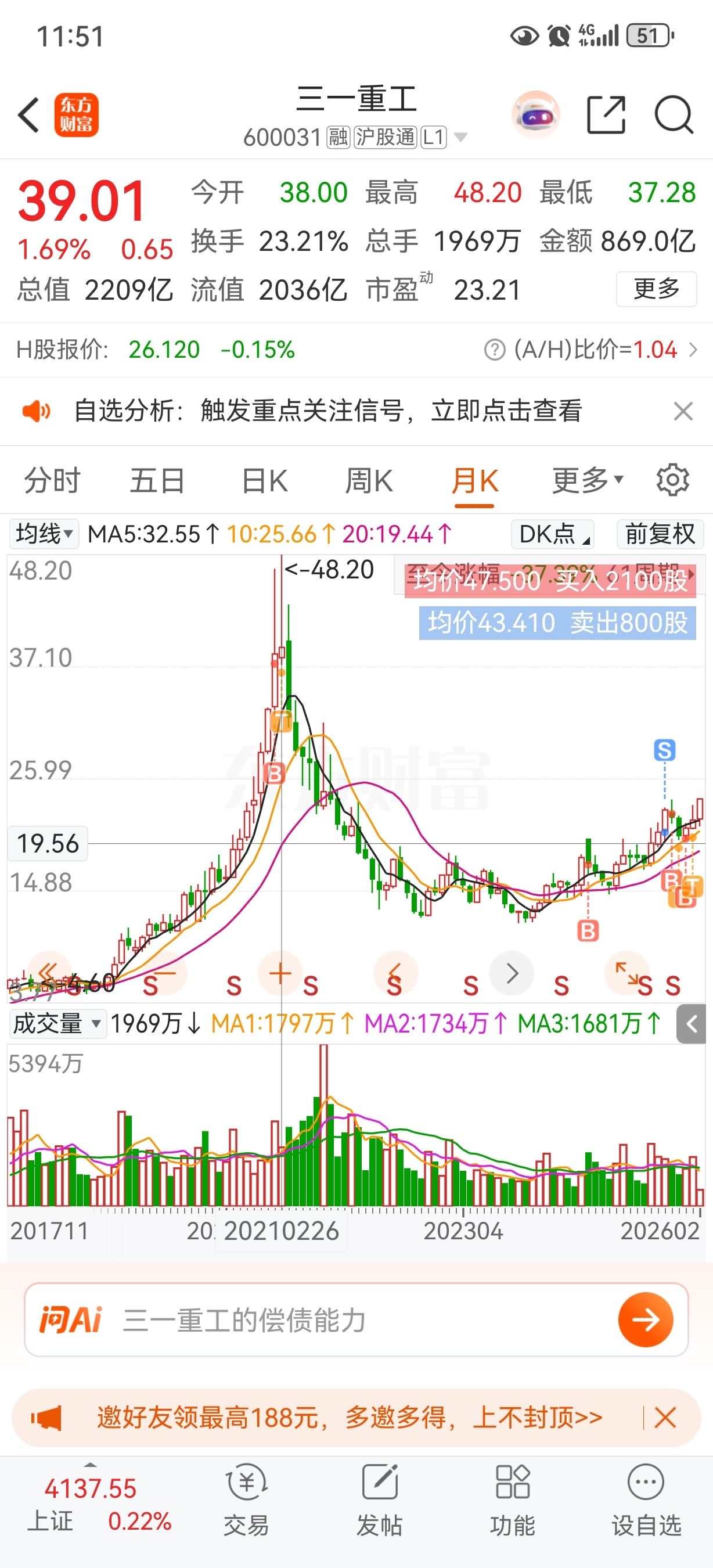 $三一重工(SH600031)$ 山顶的风真大啊,吹了我5年了