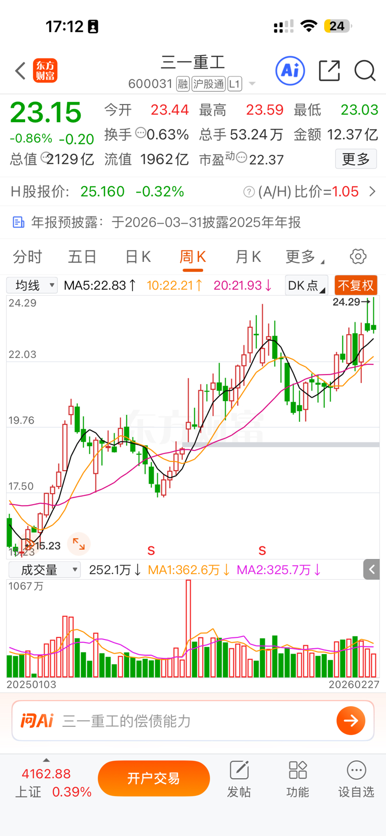 $三一重工(SH600031)$ 周线走!88