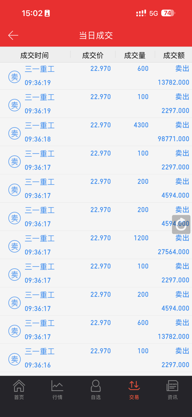 开盘就全部清仓了,开心!你们加油了哈哈,不过看今天大盘和三一都放量下跌,起码再跌