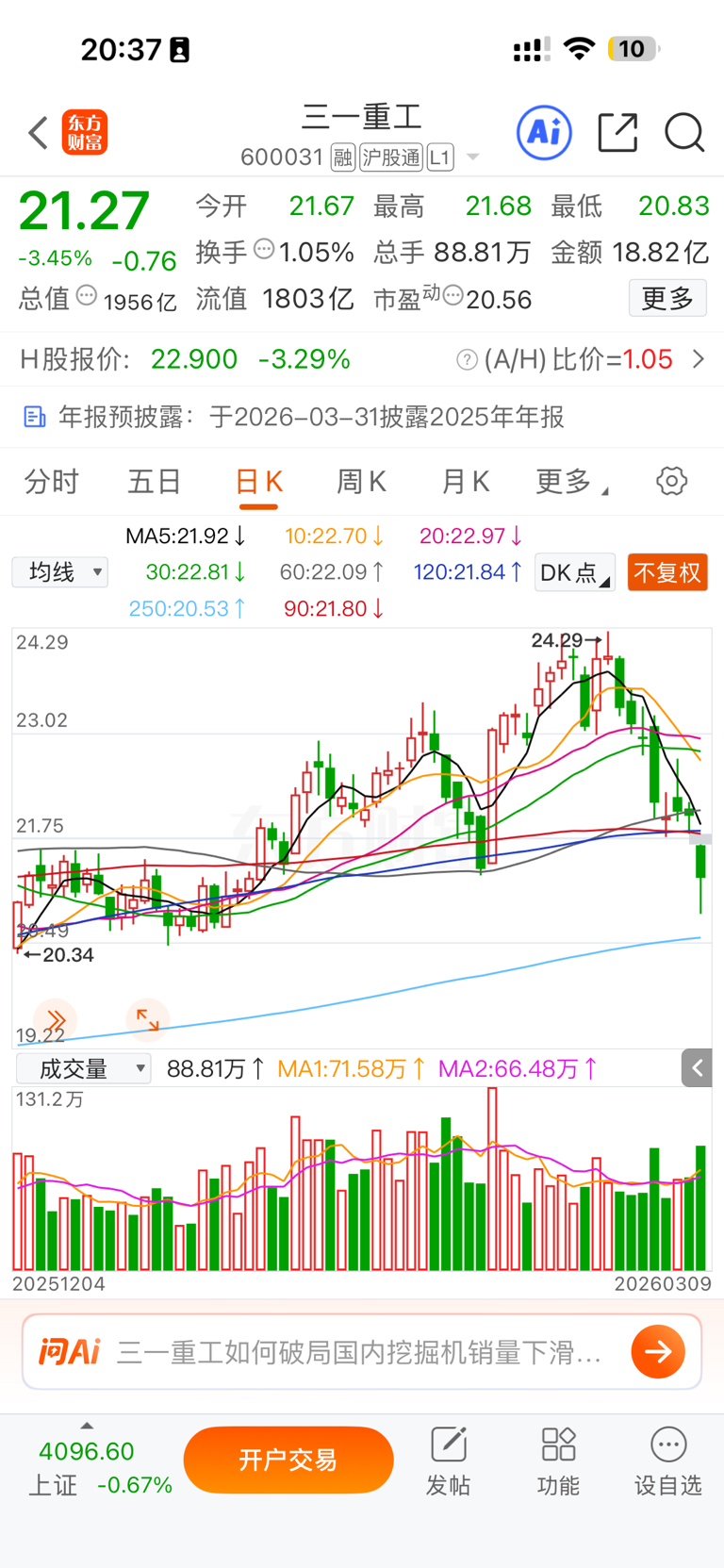 $三一重工(SH600031)$ 走坏了!哈哈!难道还有人吹?