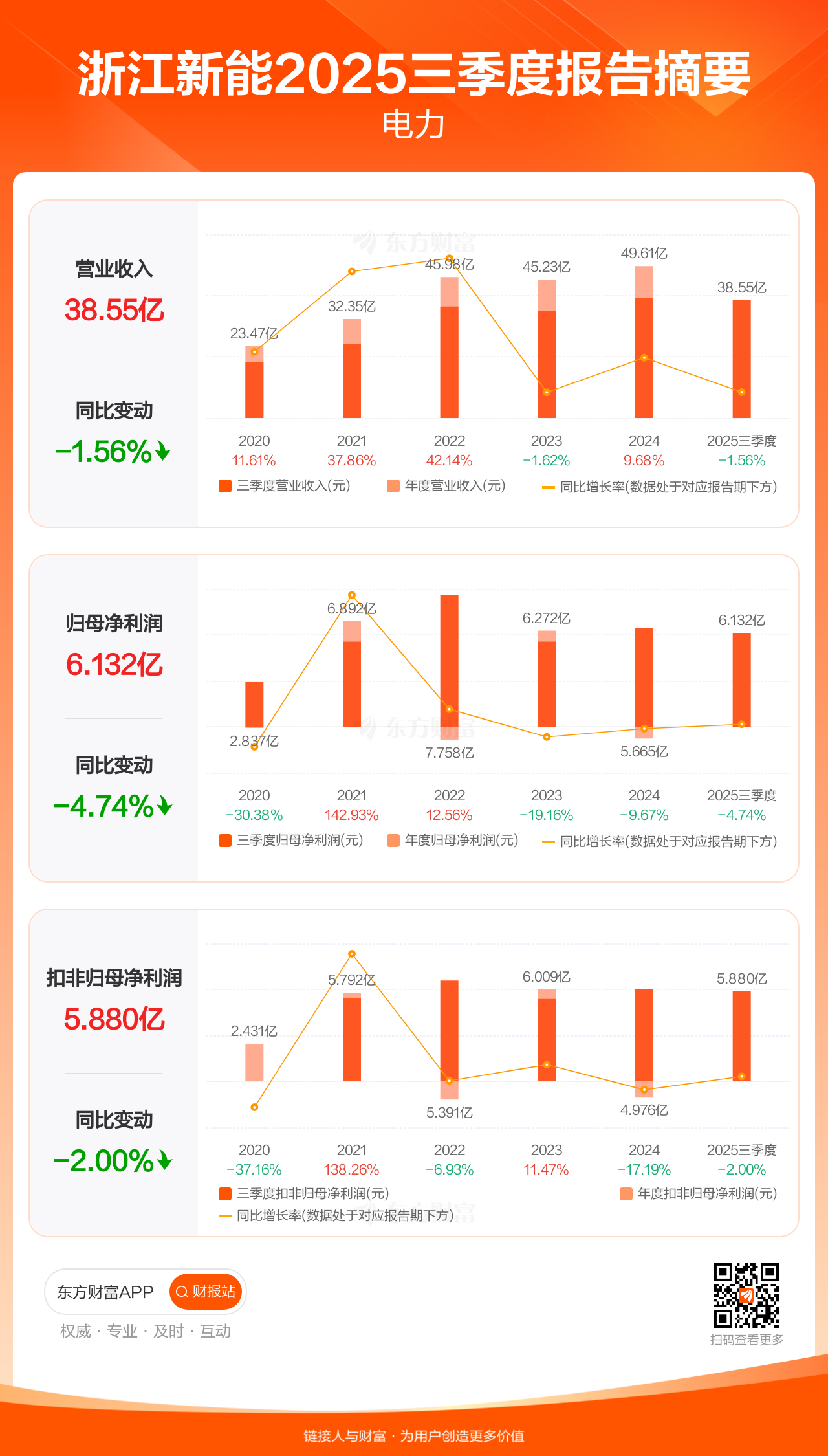 图解财报:浙江新能前三季归母净利润6.13亿元,同比减少4.74%