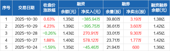 浙江新能:融资净偿还385.94万元,融资余额1.35亿元(10-30)