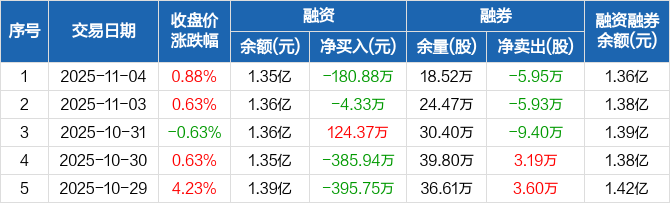 浙江新能:融资净偿还180.88万元,融资余额1.35亿元(11-04)