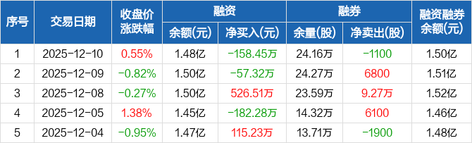 浙江新能:融资净偿还158.45万元,融资余额1.48亿元(12-10)