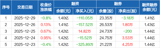 浙江新能:融资净偿还110.05万元,融资余额1.4亿元(12-29)