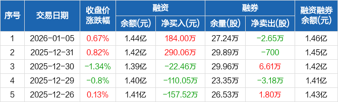 浙江新能:融资净买入184万元,融资余额1.44亿元(01-05)