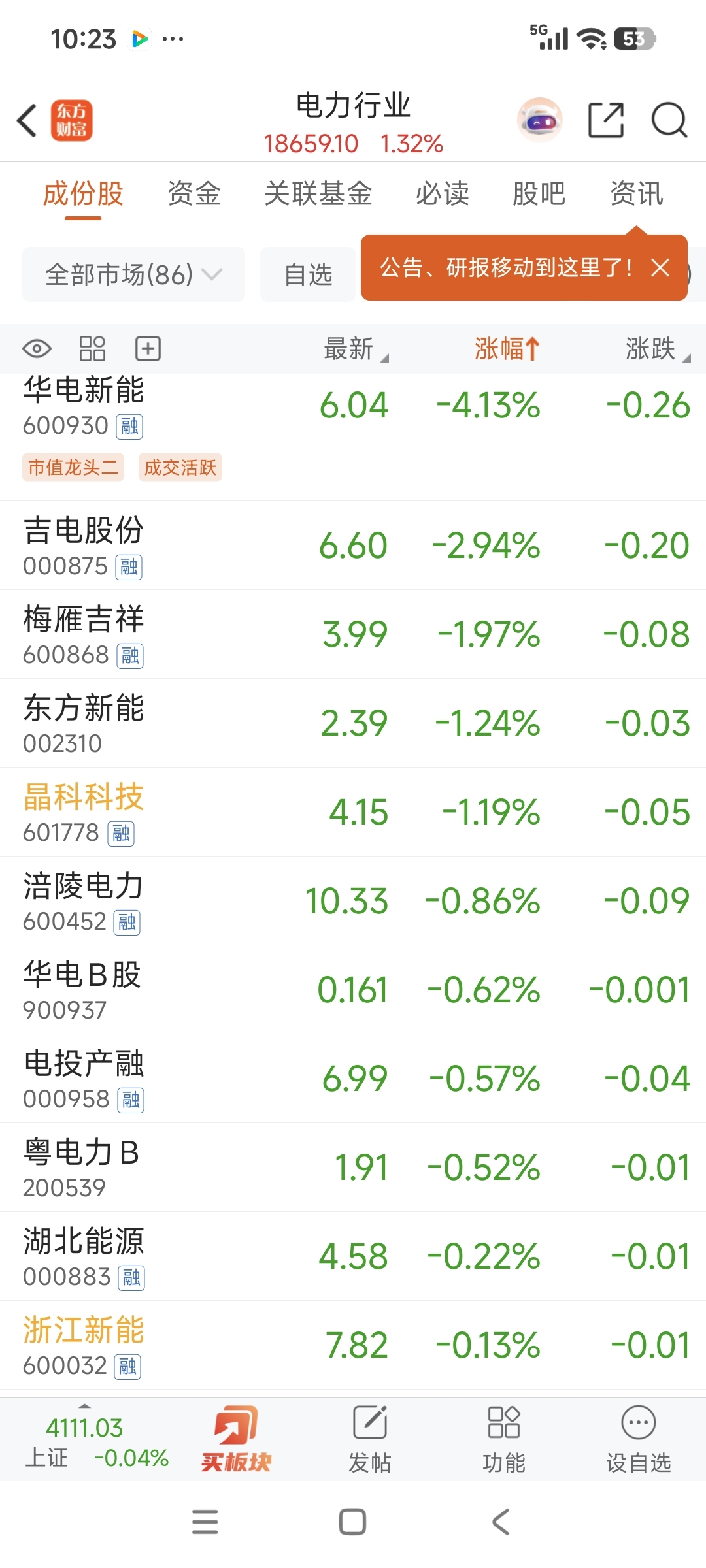 $浙江新能(SH600032)$ 板块倒数