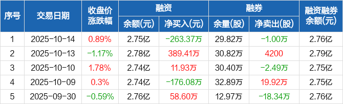 福建高速:融资净偿还263.37万元,融资余额2.75亿元(10-14)