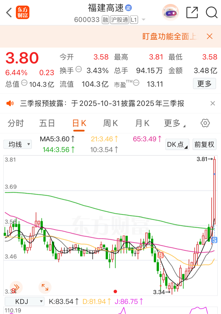 $福建高速(SH600033)$ 一卖就飞,不愧是我