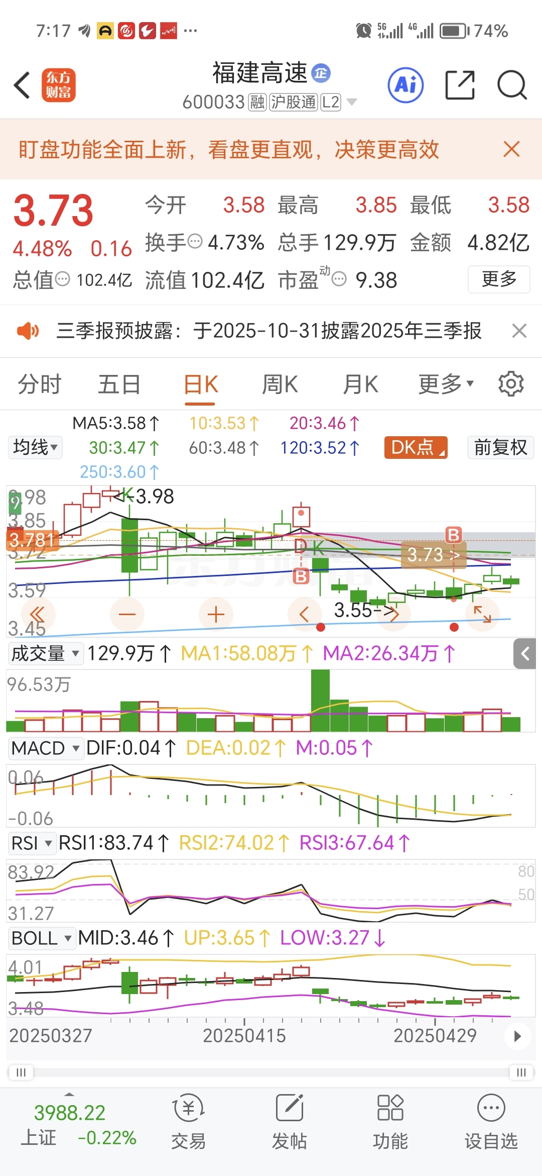 $福建高速(SH600033)$ 4-8骗进来的,买入后明天就跳空下跌,也不知道何原因,现在突然涨起来了,今天能回本吗?本来想买稳一点的股票,反而跌的更厉害!
