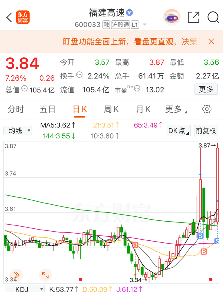 $福建高速(SH600033)$ 一卖就飞,不愧是我