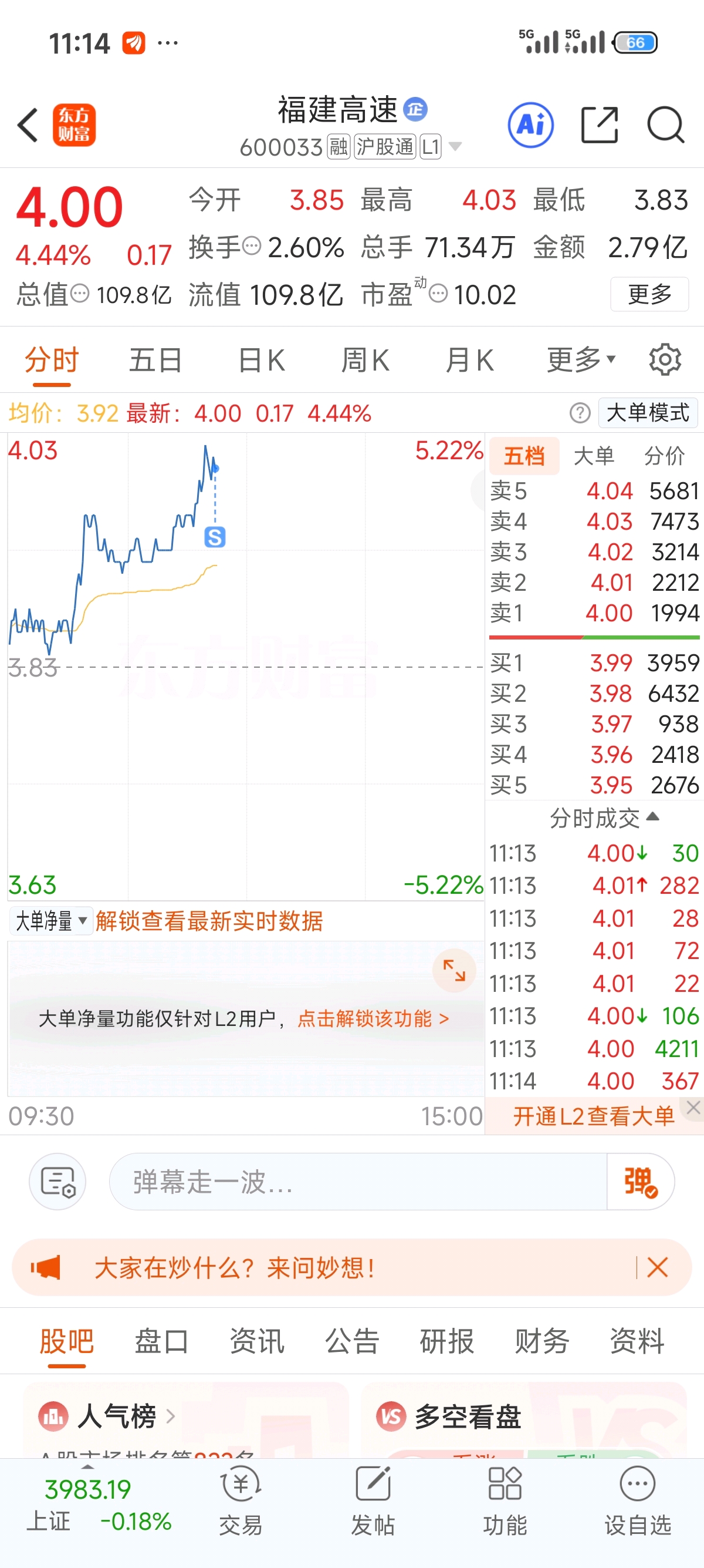 $福建高速(SH600033)$ 云南铜业 赚63%,买入东软载波 赔2%卖出全仓进 福建高速赚16%个点,今天卖出了留下的朋友发财
