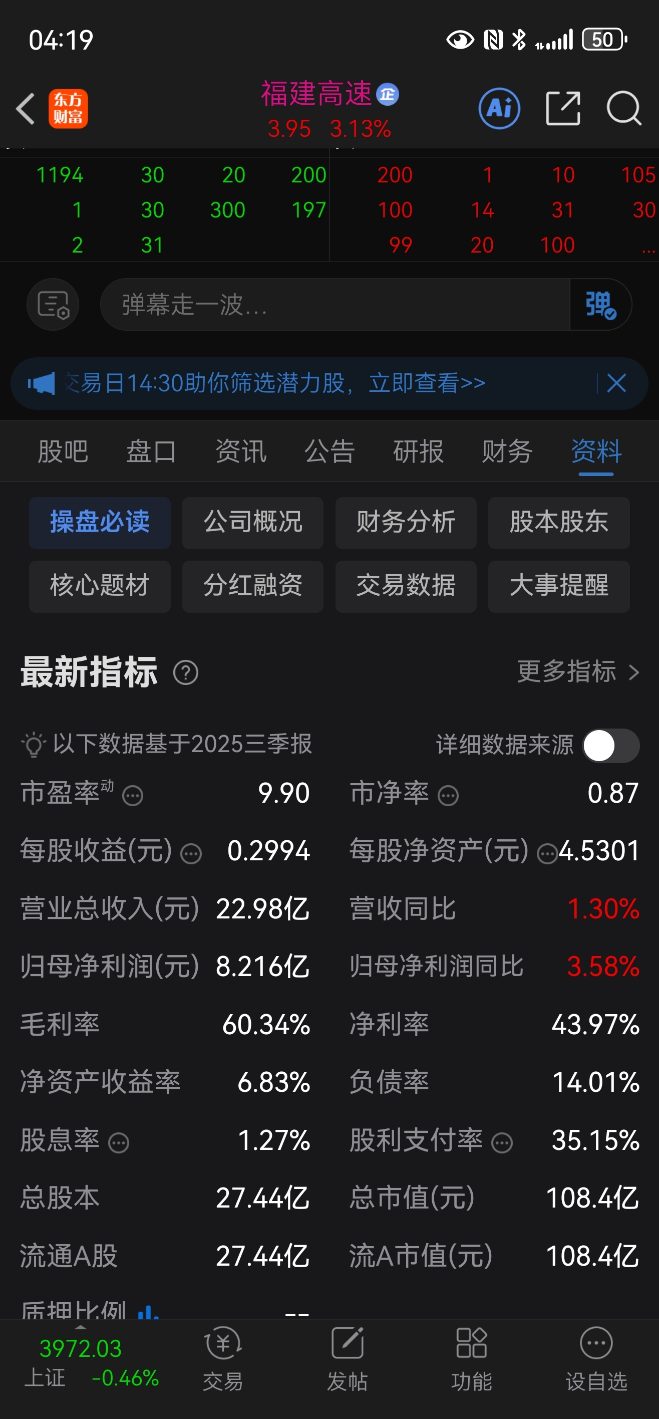 $福建高速(SH600033)$ 净资产4.53你们在怕什么。