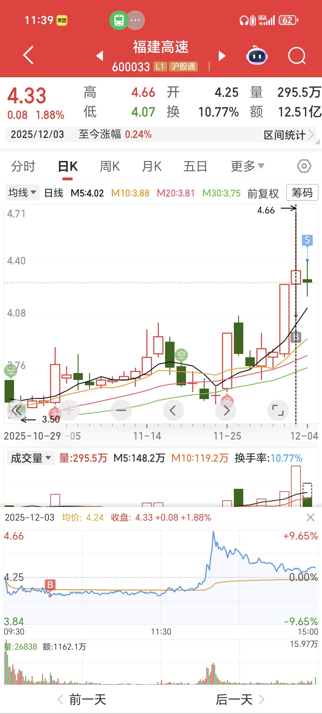 $福建高速(SH600033)$ 想着修路到台湾概念买的,虽然昨天主力不封板但还是感谢主力,明天看情况回来,杂毛想翻身不果断还是很难的。