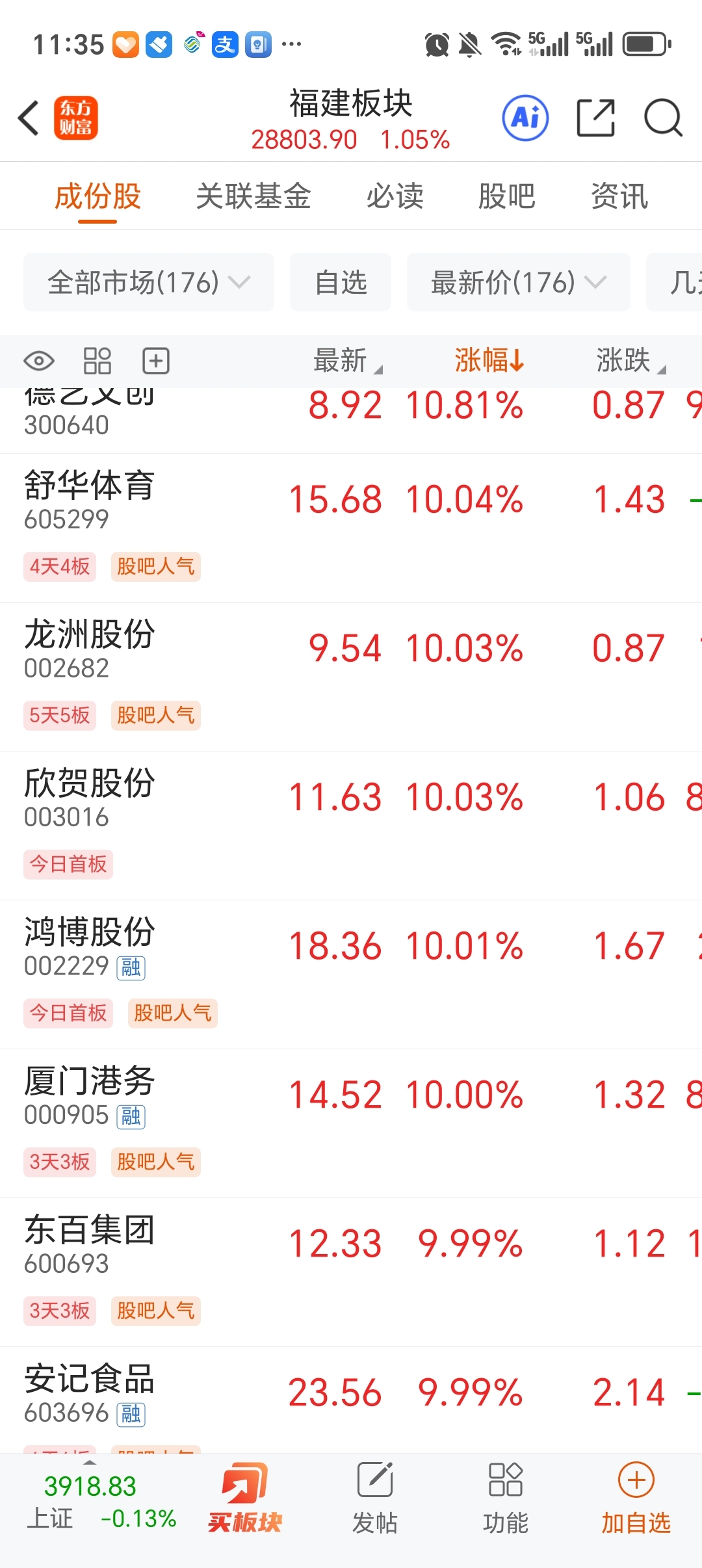 $福建高速(SH600033)$ 昨天快30只福建股涨停,今天15只10个点