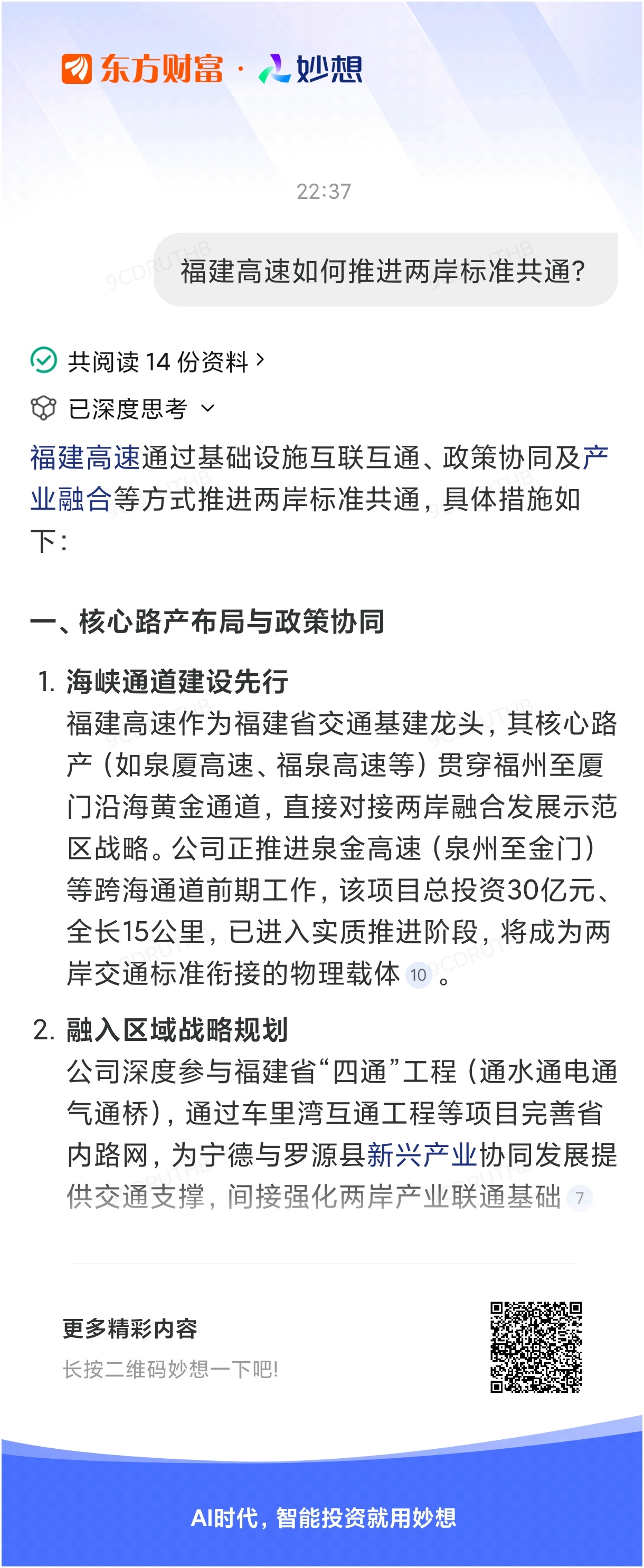 #@妙想,你怎么看?# $福建高速(SH600033)$ 妙想一下:福建高速如何推进两岸标准共通?