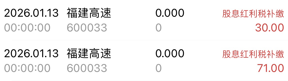 $福建高速(SH600033)$ 真的有病吧???分红了就扣了税一次,然后昨天把剩下100股卖了,还要扣我一次税,真心无语