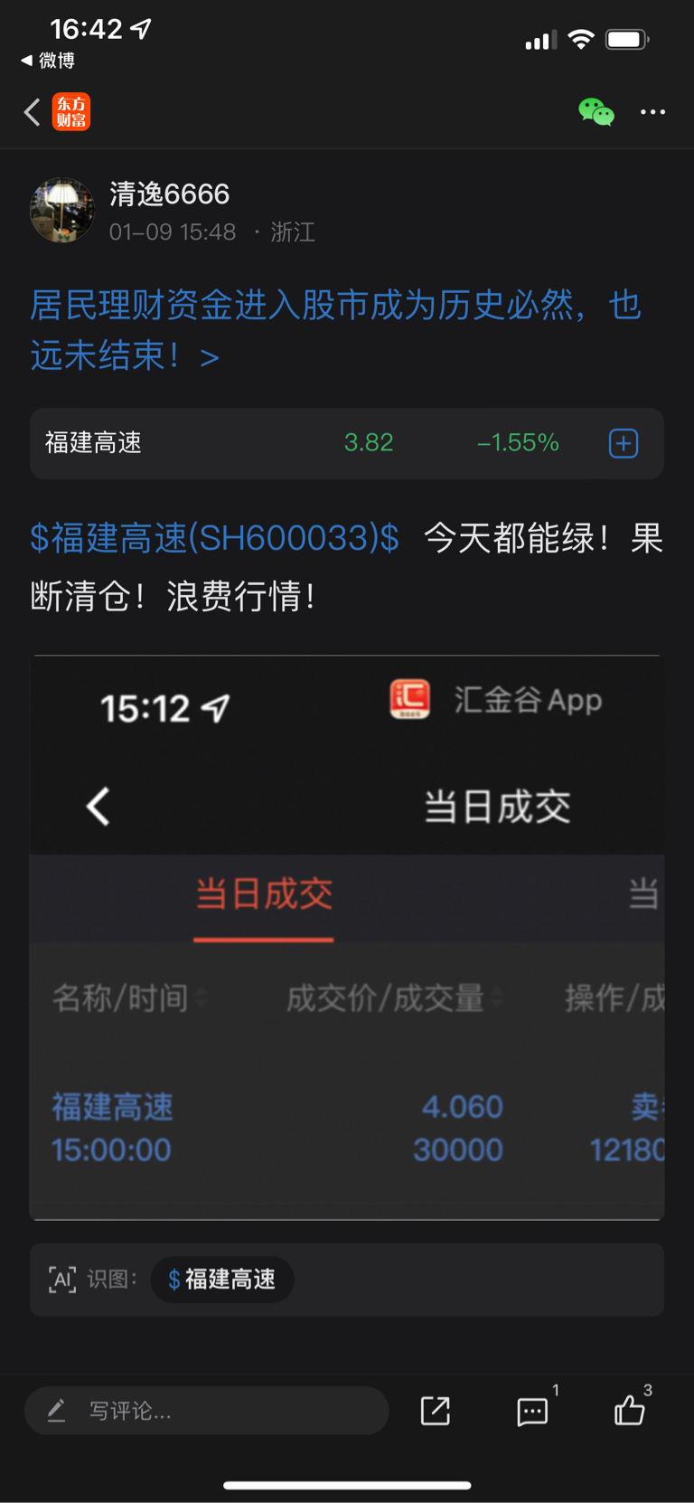 $福建高速(SH600033)$ 不怕下跌,就怕阴跌!4.06走的