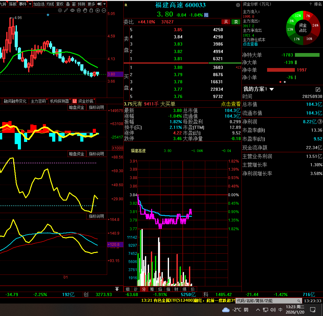0120星期二 福建高速 底部主动资金是否得以扭转