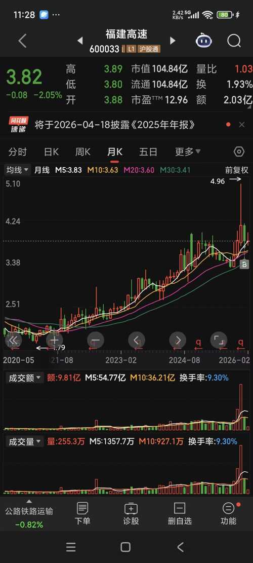 看看吉林高速的月线已经突破了,创新高只需一步之遥(上涨8个点),然后上方再无助力