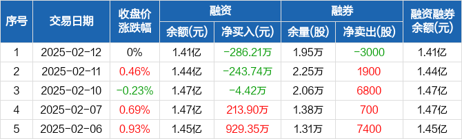 楚天高速:连续3日融资净偿还累计534.37万元(02-12)