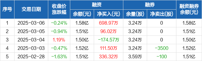 楚天高速:融资净买入698.97万元,融资余额1.58亿元(03-06)