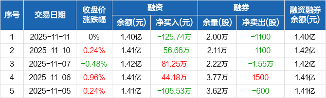 楚天高速:融资净偿还125.74万元,融资余额1.4亿元(11-11)