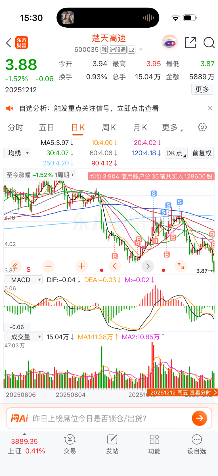 $楚天高速(SH600035)$ 家人们破位了 我还有活路吗?谁能99我