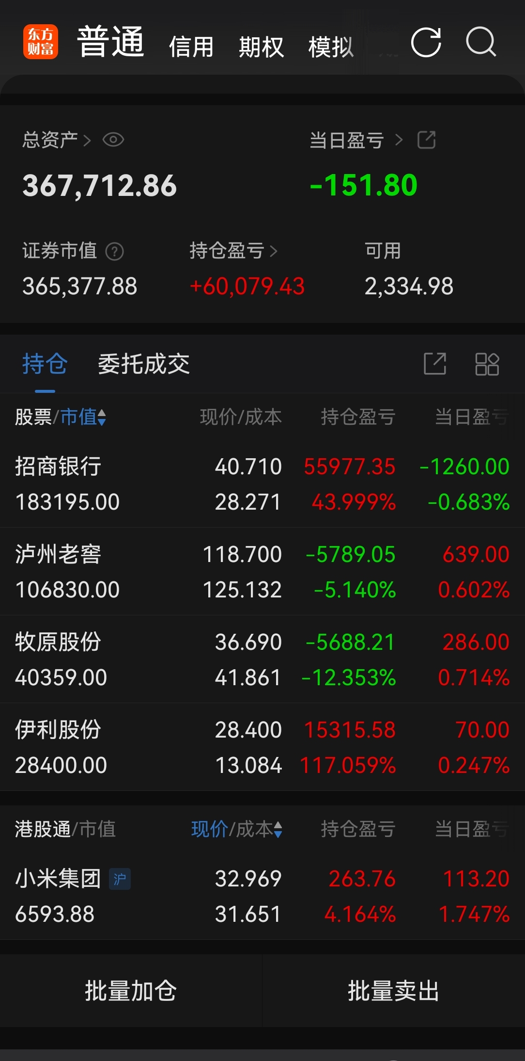 今天浮亏152元,无操作。消费和银行在跷跷板。