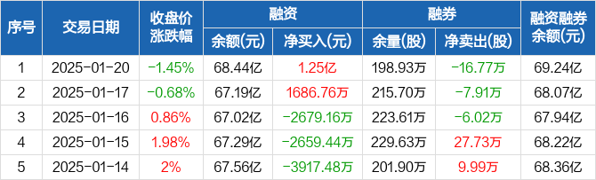 招商银行:融资净买入1.25亿元,两市排名第12(01-20)