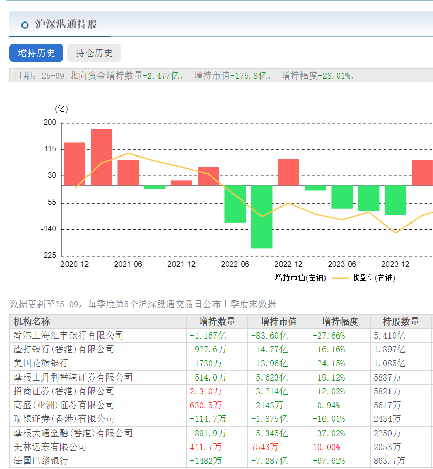 我的妈呀,25年三季度北向资金减持2.477亿股!!!其中24年前10月承担救市