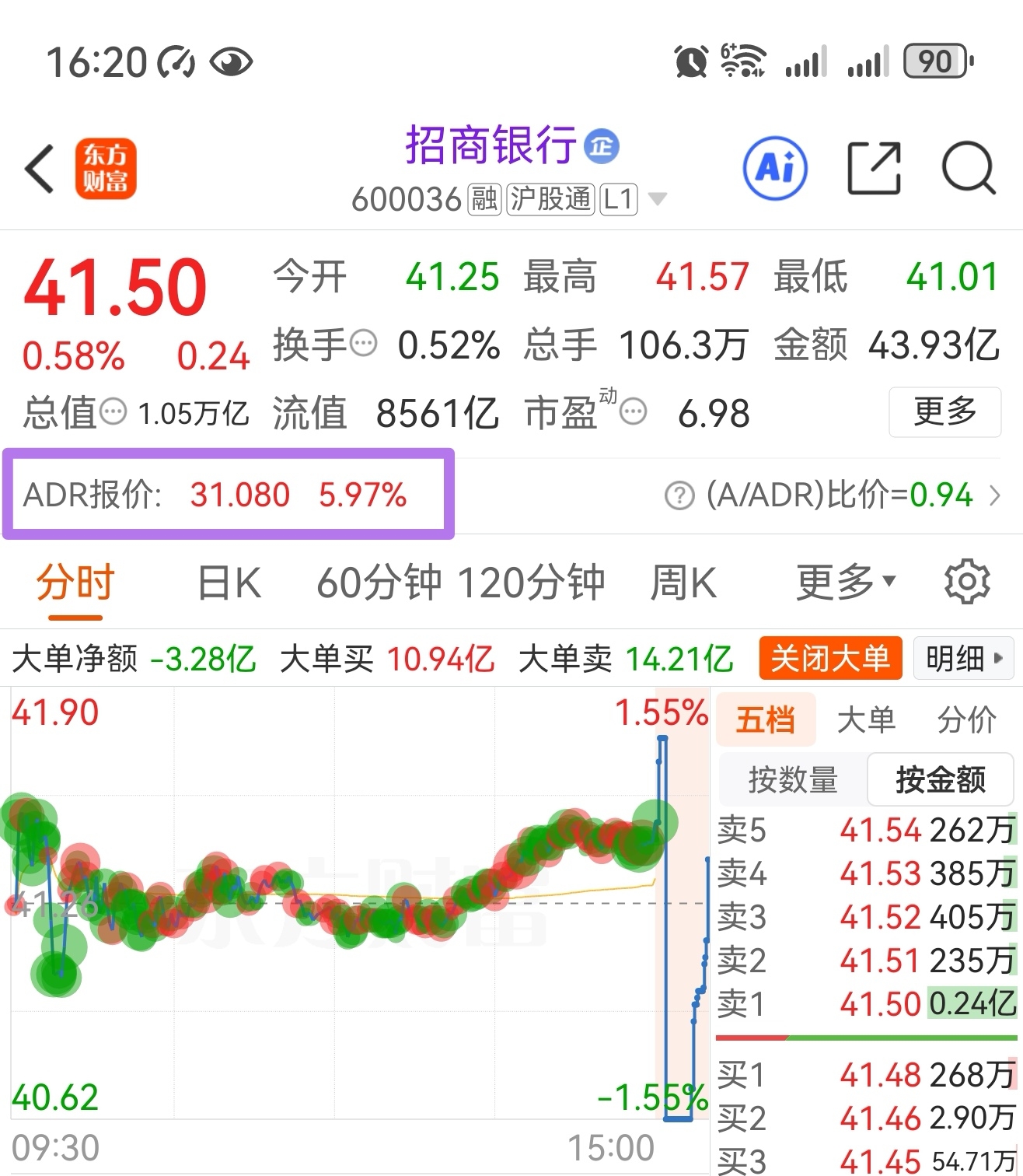 招商银行,ADR报价,大涨,5.97%,这是有什么大利好?