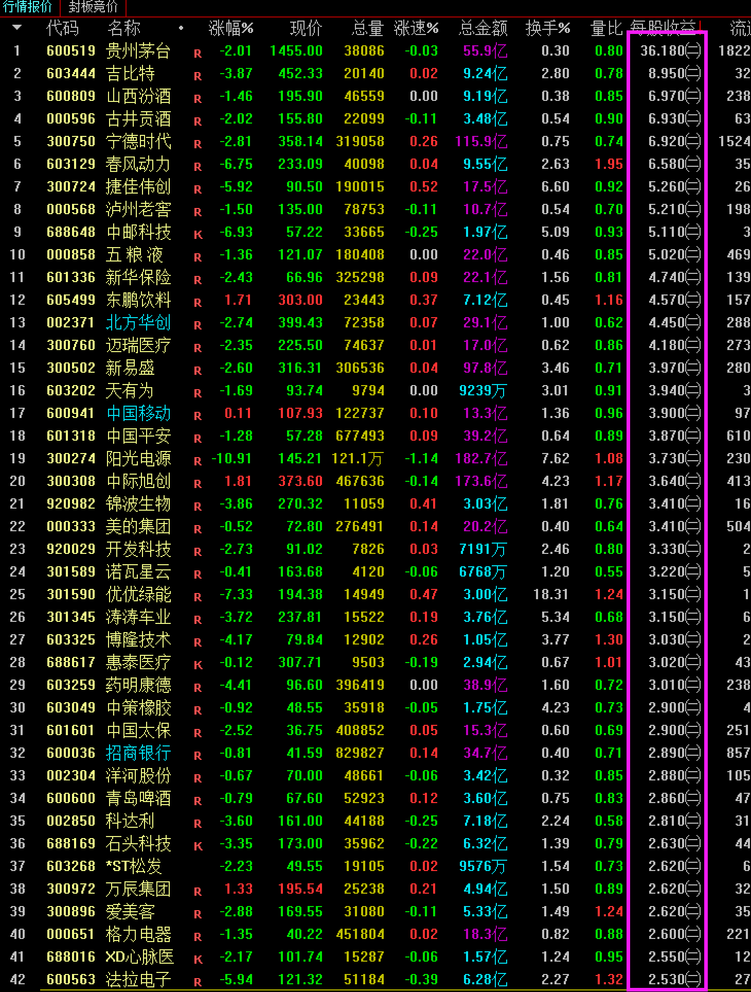 接下来,市场会炒作PE。从这个表中找出低于100元的股,然后分析一下业绩的稳定性
