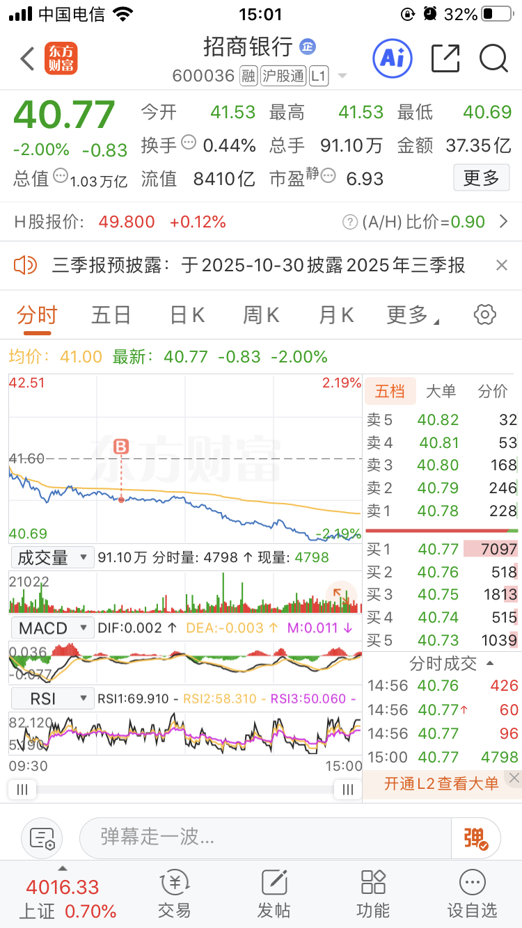 $招商银行(SH600036)$ 加在半山腰,你今天下劲跌的