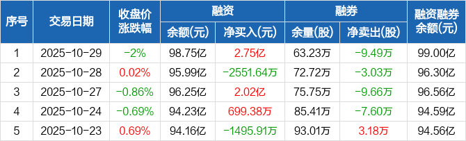 招商银行融资融券信息显示,2025年10月29日融资净买入2.75亿元;融资余额98.75亿元,创近一年新高,较前一日增加2.87%。