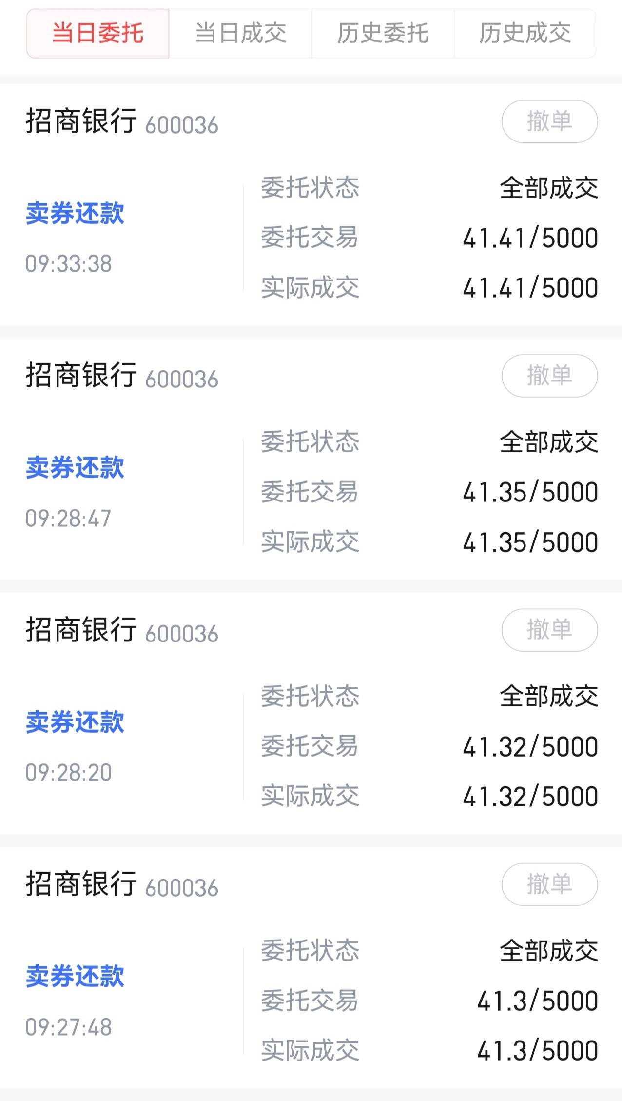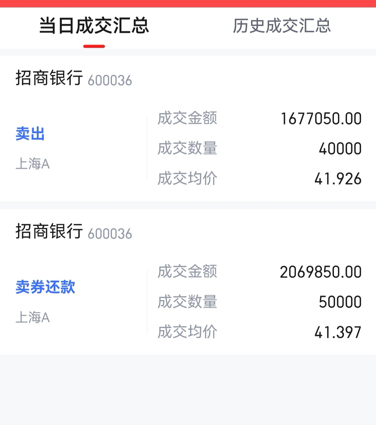 今天招行的走势强的出乎意料,融资盘全部清空了。临收盘前,再卖出4万股,卖出均价41.926元,先锁定盈利再说。