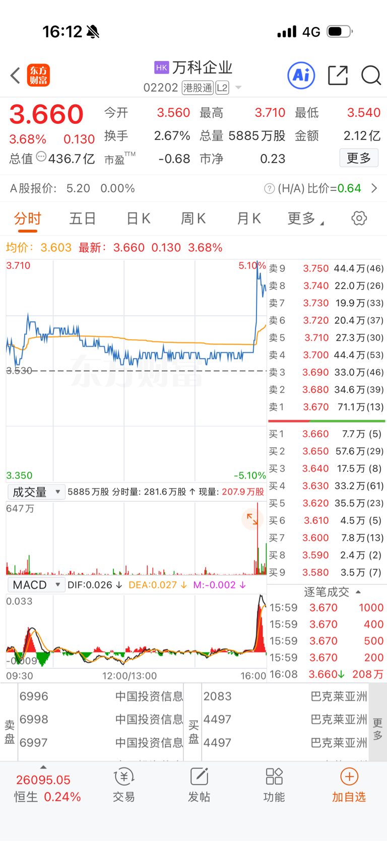 $招商银行(SH600036)$ 万科尾盘大涨,明天能带动招商银行反弹2%吗?