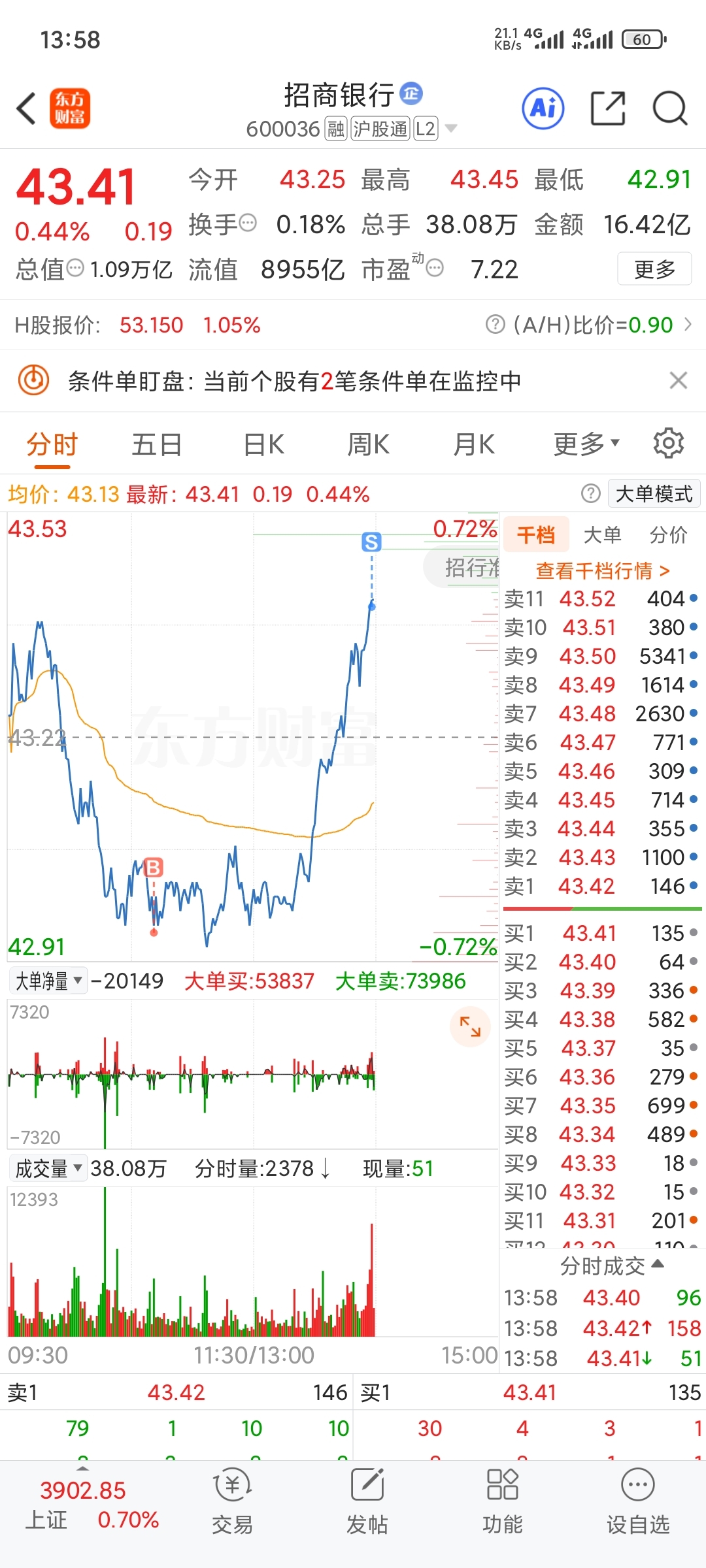 43.8一旦突破那就44以上了