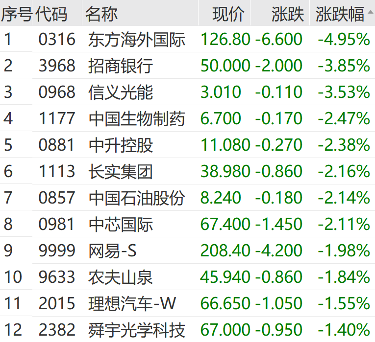 港股市场上午同步震荡,截至午间收盘,三大指数集体飘绿;东方海外国际、招商银行、信义光能等领跌恒指成份股。