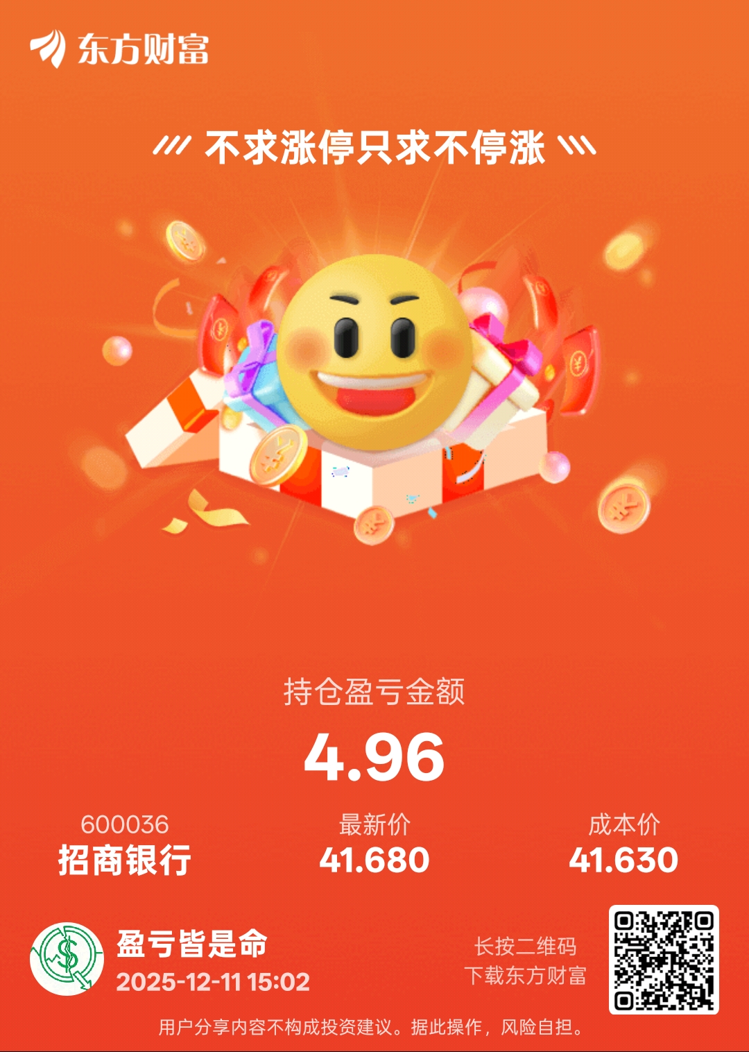 郑重声明:用户在财富号/股吧/博客等社区发表的所有信息(包括但不限于文字、视频、音频、数据及图表)仅代表个人观点,与本网站立场无关,不对您构成任何投资建议,据此操作风险自担。请勿相信代客理财、免费荐股和炒股培训等宣传内容,远离非法证券活动。请勿添加发言用户的手机号码、公众号、微博、微信及QQ等信息,谨防上当受骗!