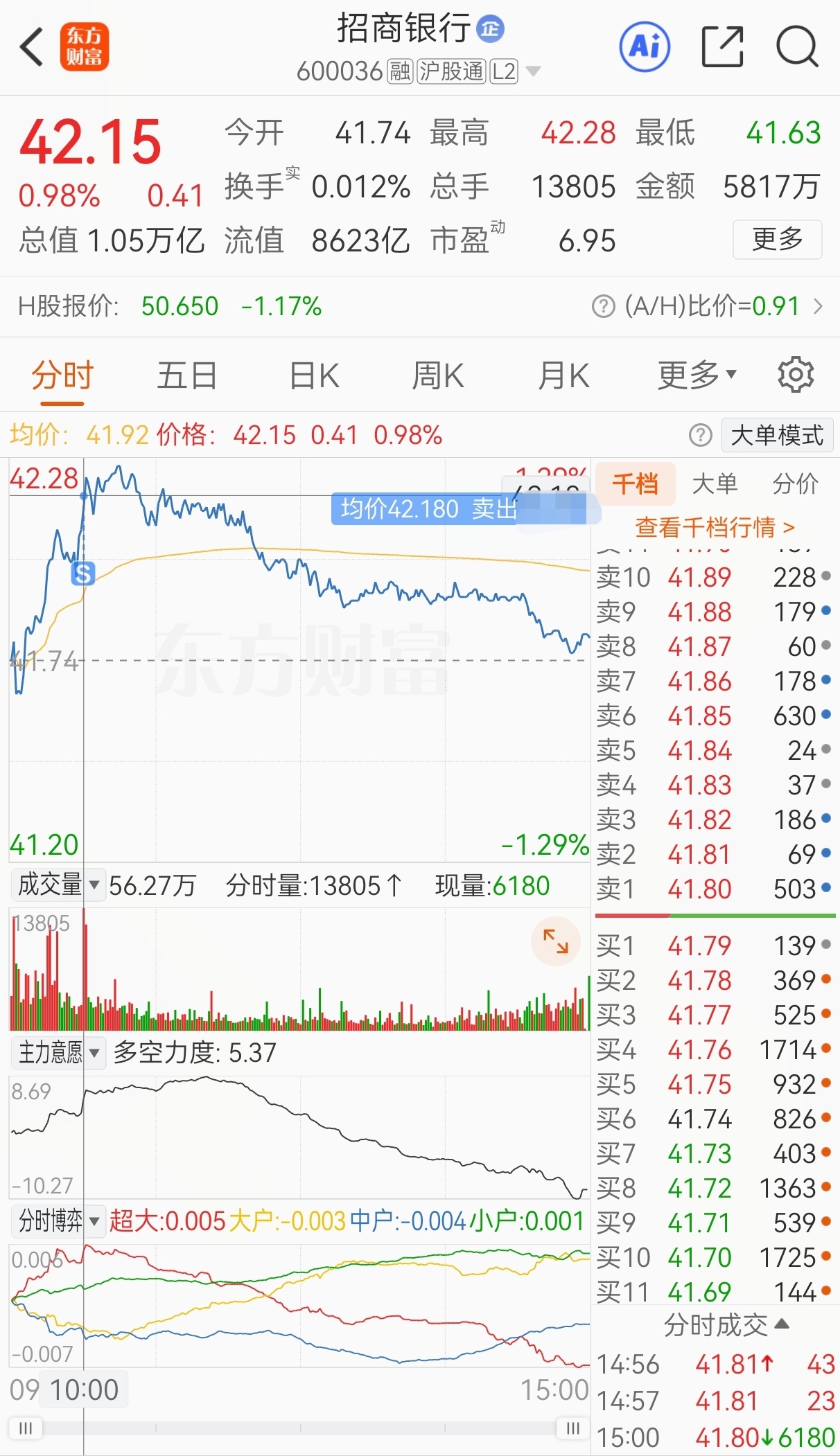 $招商银行(SH600036)$ 原计划今买明卖,实际41.7买,第二天、第三天持股不动,42.18卖,实盘短线套利招商银行,成功收米走人!
