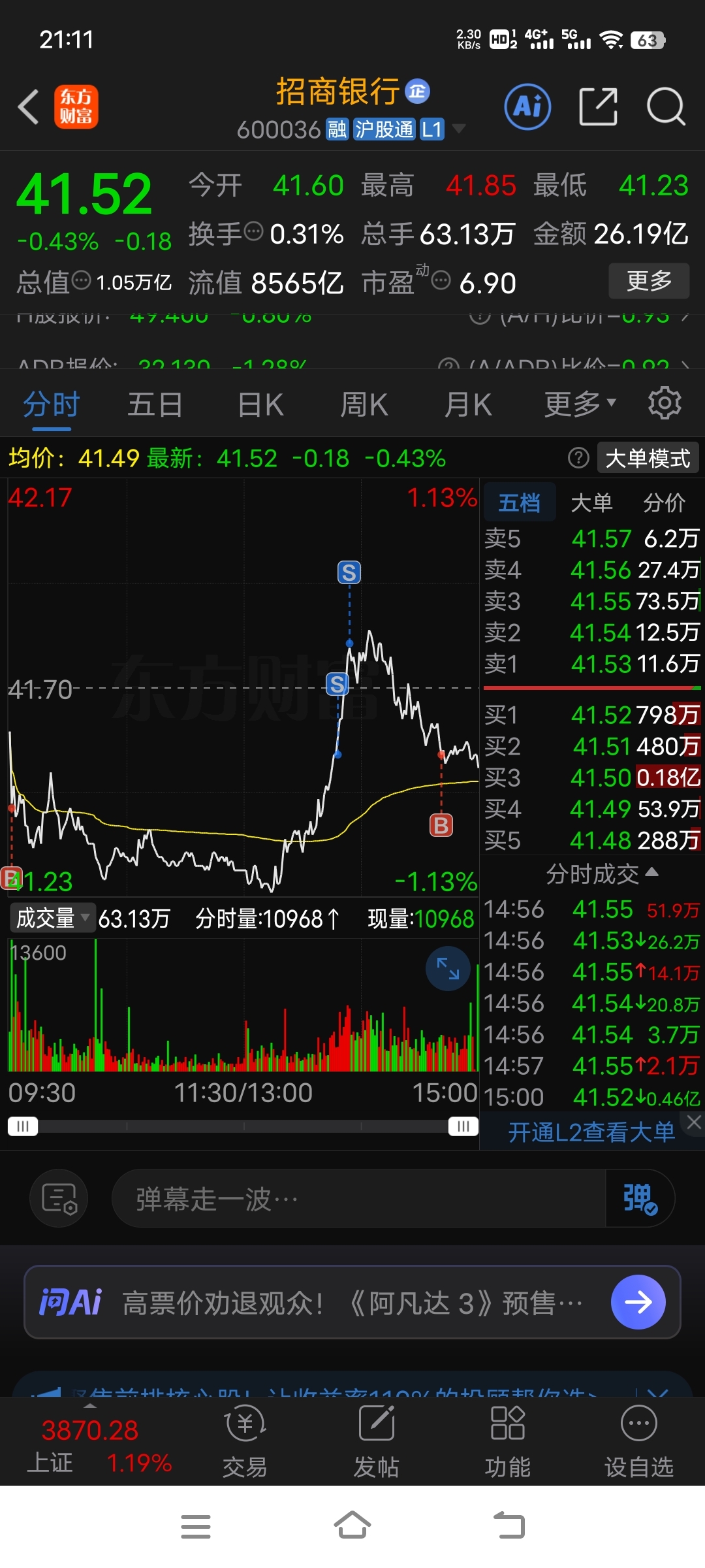 $招商银行(SH600036)$ 词穷了,不知道怎么形容了,走的,