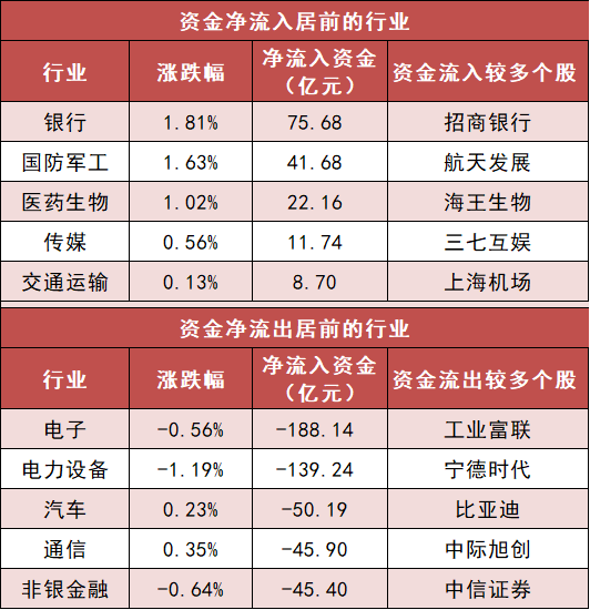 【18日资金路线图】两市主力资金净流出超290亿元 银行等行业实现净流入