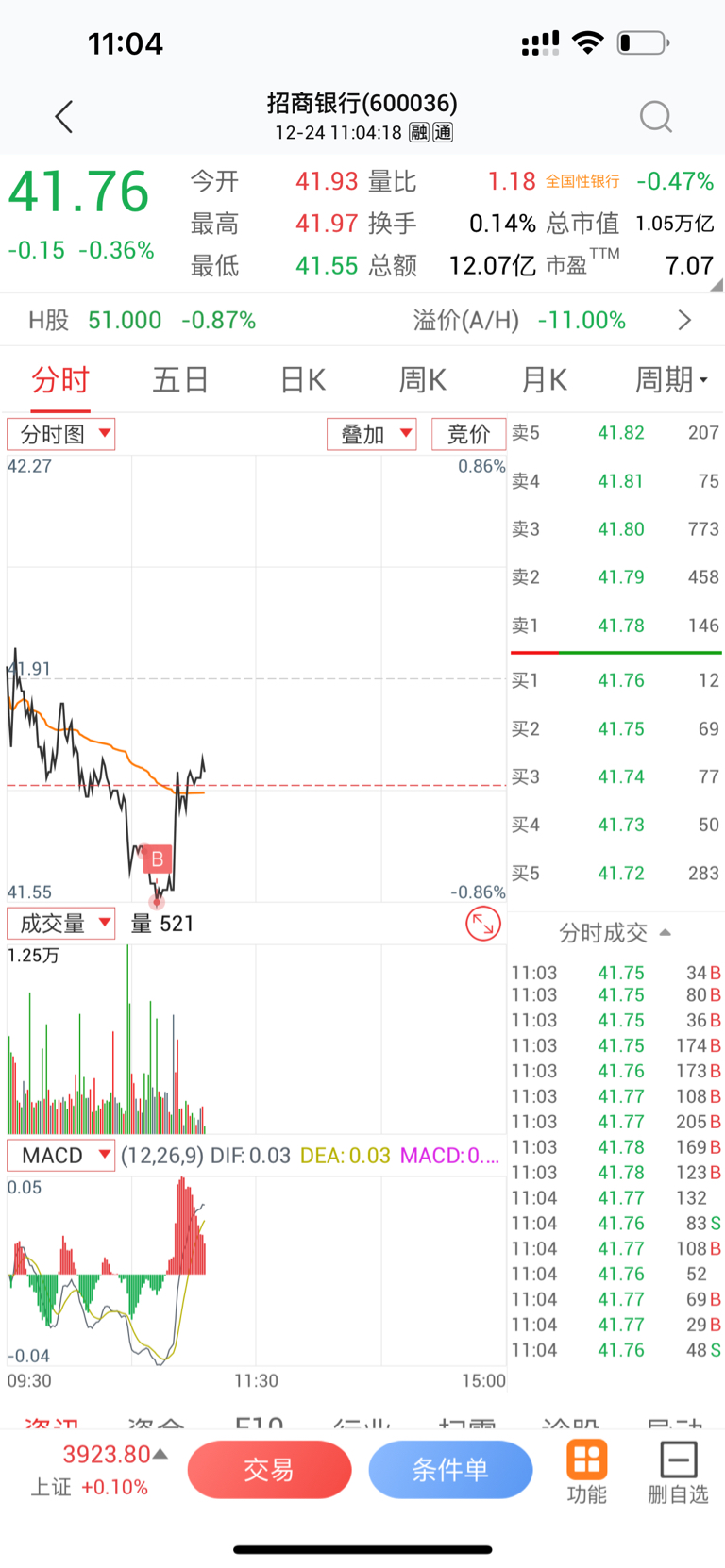 $招商银行(SH600036)$ 牛逼不,兄弟们,最低点买的