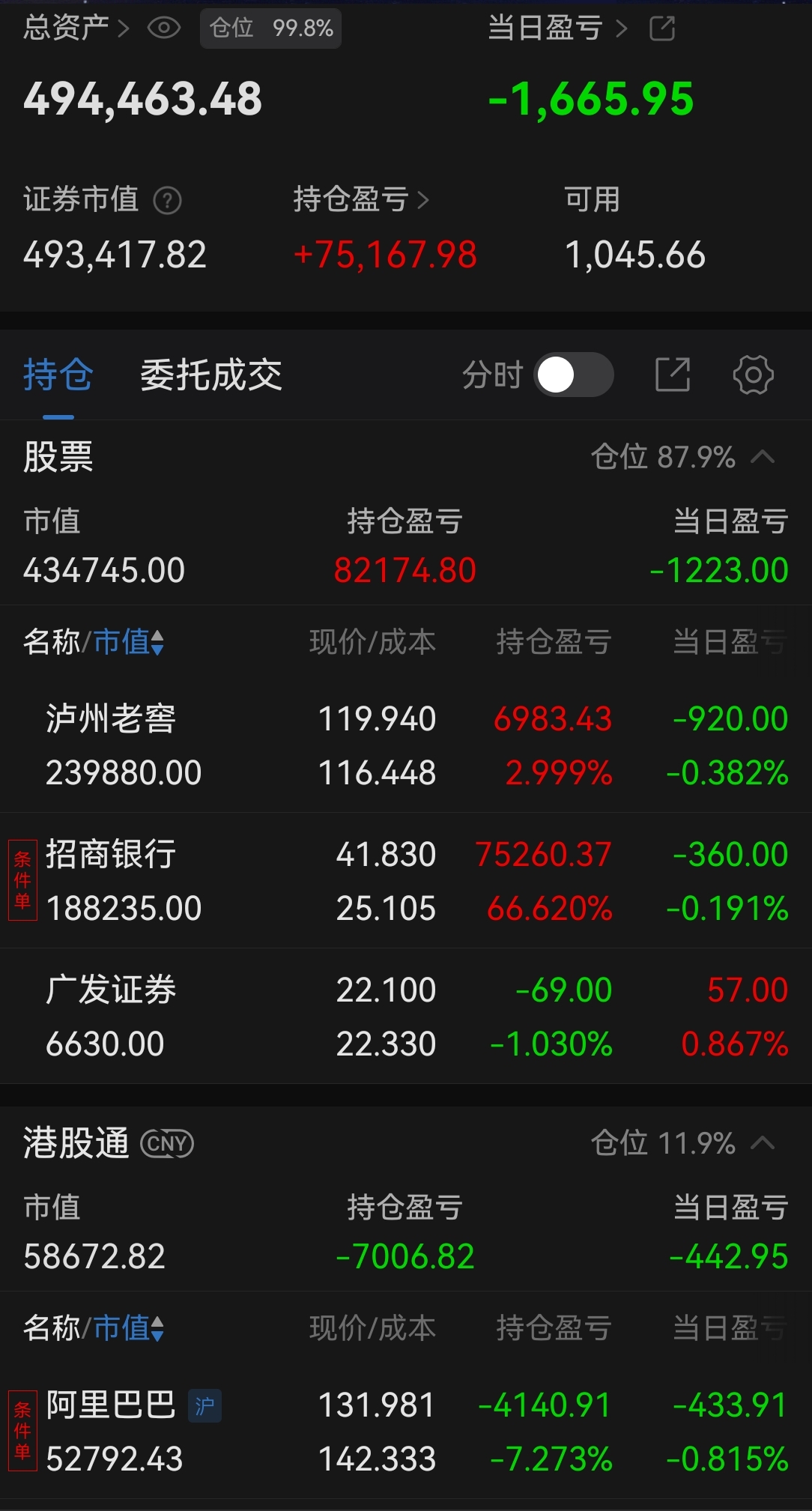 今天浮亏约1700元,无操作。我自己的想法和目标依旧没变。如果当前的持仓股票可以